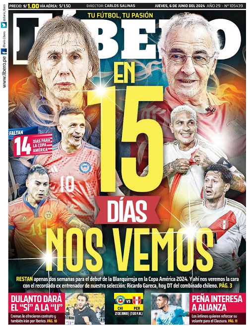 "En 15 días nos vemos", escribió el matutino, colocando la imagen de los entrenadores de ambas escuadras: Ricardo Gareca y Jorge Fossati.