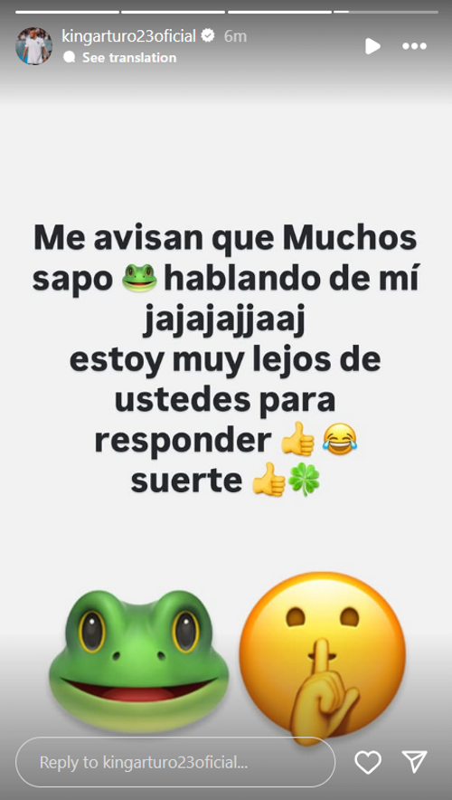 "Me avisan que muchos sapos (están) hablando de mí, jaja. Estoy muy lejos de ustedes para responder, suerte", escribió en la red social, utilizando varios emojis.