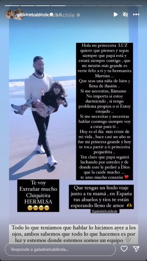 Ante este extenso mensaje, Gala respondió en una historia de Instagram y aclaró que el viaje de la pequeña era algo que estaba acordado con su ex pareja.