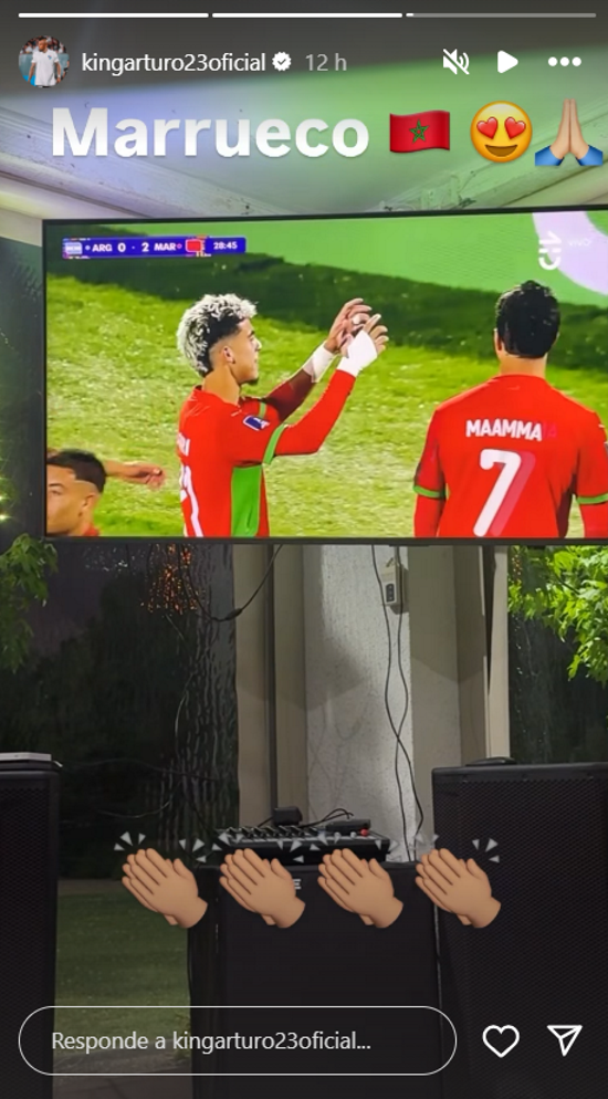 El apoyo de Vidal al flamante campeón de la cita planetaria se sumó al del público que llegó al recinto de Ñuñoa, el que festinó con la derrota de La Albiceleste.
