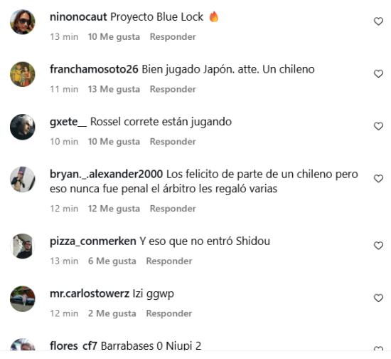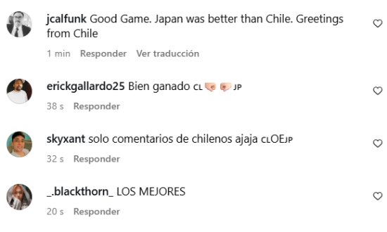 La derrota generó una ola de reacciones de los hinchas, donde los chilenos fueron en masa al Instagram de la Asociación Japonesa de Fútbol.