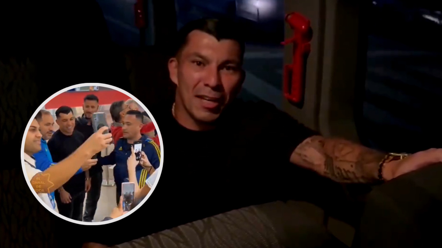 Gary Medel arribó este miércoles a la capital de Argentina, donde estaba siendo esperado por hinchas y medios de comunicación. El Pitbull se sacó varias fotos con simpatizantes Xeneizes, pero luego ante las preguntas de los periodistas fue sacado rápidamente del aeropuerto por gente del club.