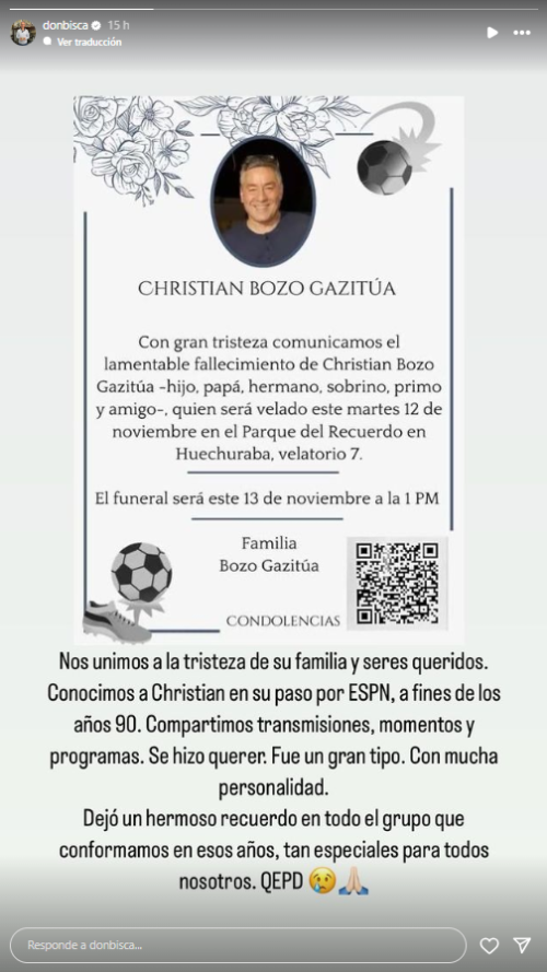 "Compartimos transmisiones, momentos y programas. Se hizo querer. Fue un gran tipo. Con mucha personalidad. Dejó un gran recuerdo en todo el grupo que conformamos", agregó el comentarista.