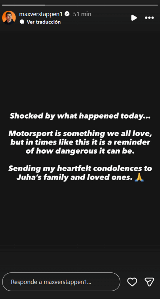 Uno de los que lamentó el deceso fue Max Verstappen, corredor de la Fórmula 1 que era uno de los participantes y que reconoció estar “shockeado por lo ocurrido.