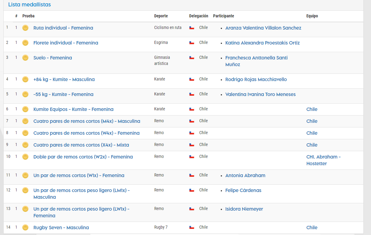 A continuación revisa todas las medallas de oro conseguidas por Chile: