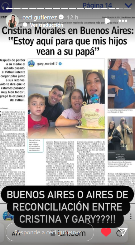 "¿Buenos Aires o aires de reconciliación entre Cristina y Gary?", señaló la periodista, dando a entender que el futbolista habría retomado su relación con Morales.