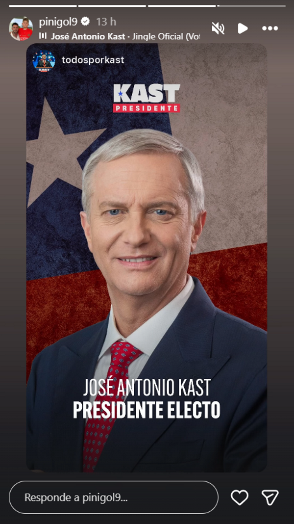 Adicionalmente, Pinilla compartió una historia en Instagram de la cuenta "Todos por Kast" con su caracterísico jingle usado en la campaña.