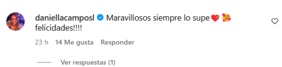 El posteo se llenó de respuestas de parte de los seguidores, donde unas de las reacciones que más llamó la atención fue la de Daniella Campos.