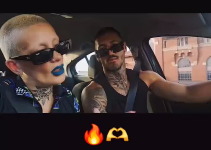 Esta vez fue un paseo en un auto que conducía el guardameta, donde se mostraron con un look muy rockero y agregando dos emojis.