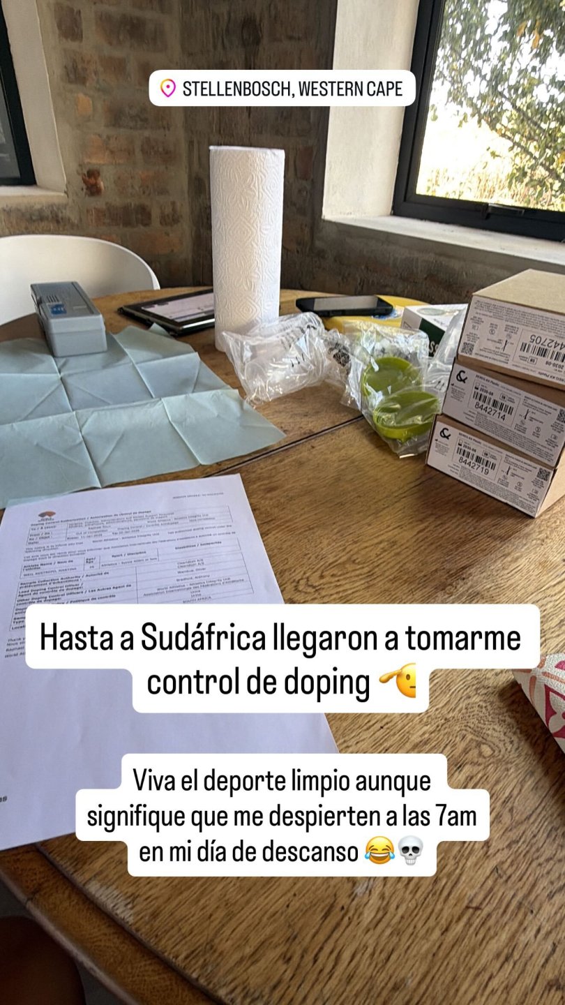 "Hasta a Sudáfrica llegaron a tomarme control de doping", partió diciendo Martina a través de una historia de Instagram donde mostraba parte del proceso.