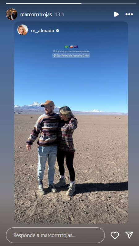 La reconocida periodista y psicológica brasileña, Renata Almada, compartió una foto que ratifica su romance con Marco Rojas, ex jugador de Colo Colo.