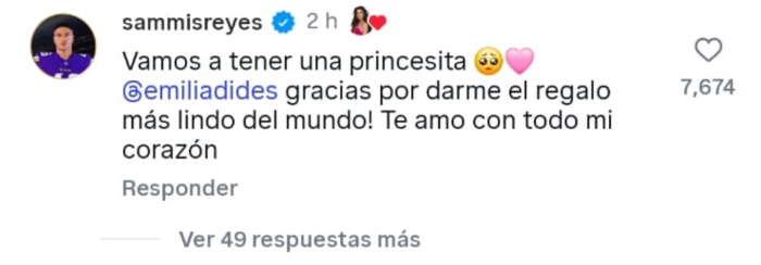 "Vamos a tener una princesita. Gracias por darme el regalo más lindo del mundo. Te amo con todo mi corazón", contestó.