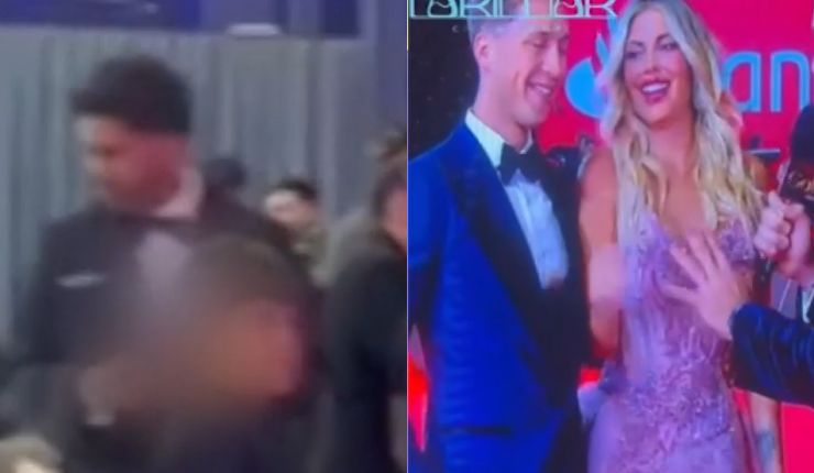 El ex futbolista estaba en el backstage al momento en que su ex esposa pasó por la alfombra roja de la mano con Lucas Lama, su actual pareja.
