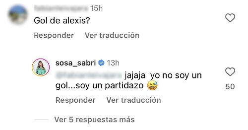 Luego de que un seguidor le consultara por su supuesto romance con Alexis, Sabrina Sosa contestó de forma muy ingeniosa y aseguró: "No soy un gol".