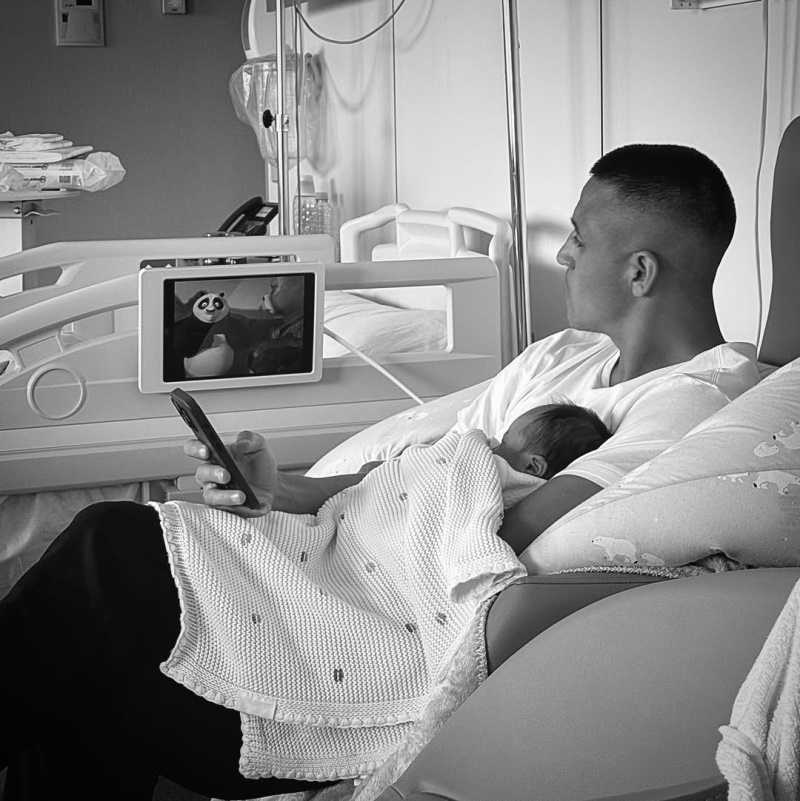 El tocopillano se mostró cargando a su hija recién nacida, donde ambos disfrutan viendo dibujos animados como la película Kung Fu Panda.