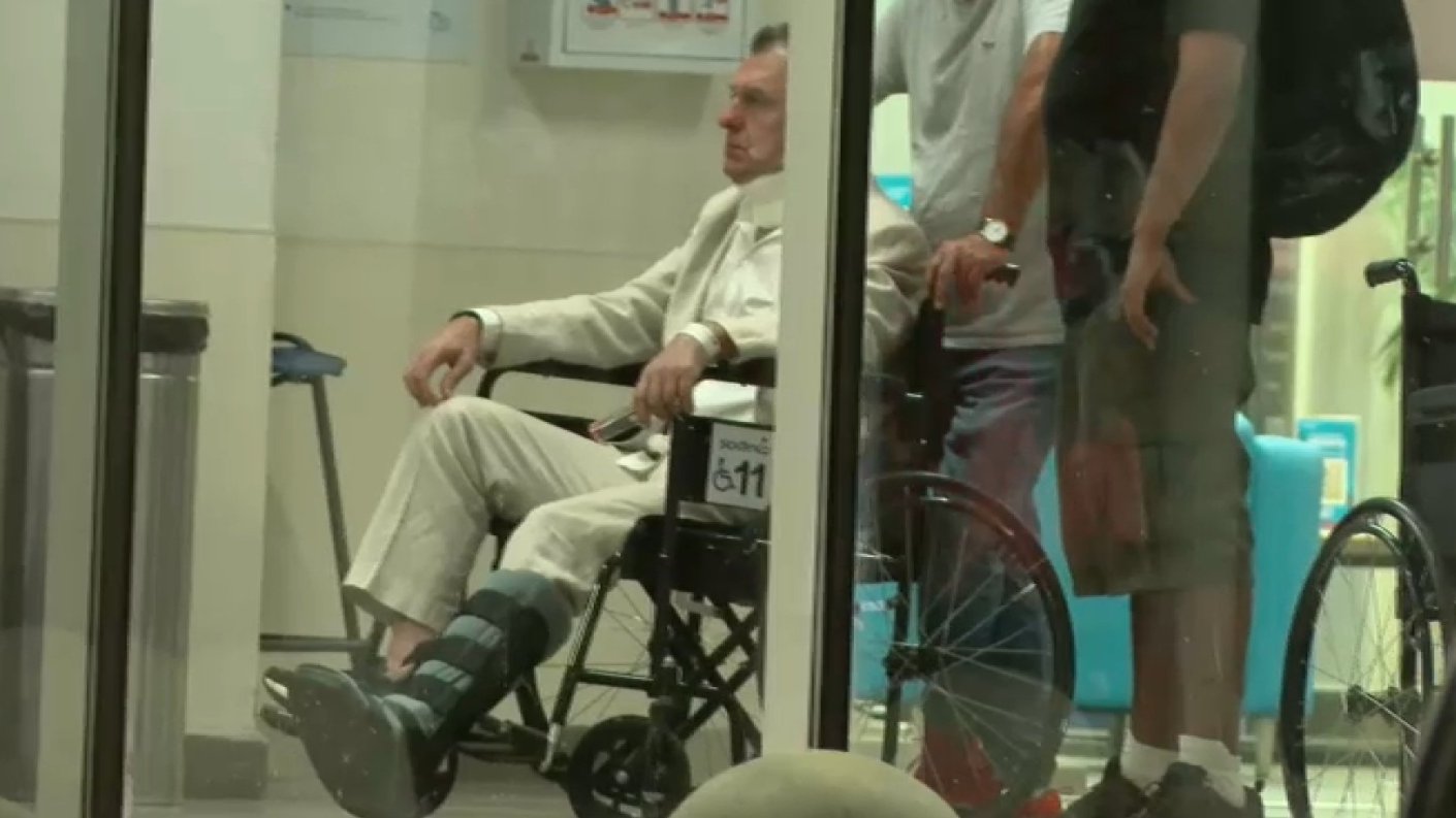 En silla de ruedas y con cuello ortopédico: Así se retiró Aníbal Mosa de la clínica luego de ser agredido en reunión de directorio de Colo Colo