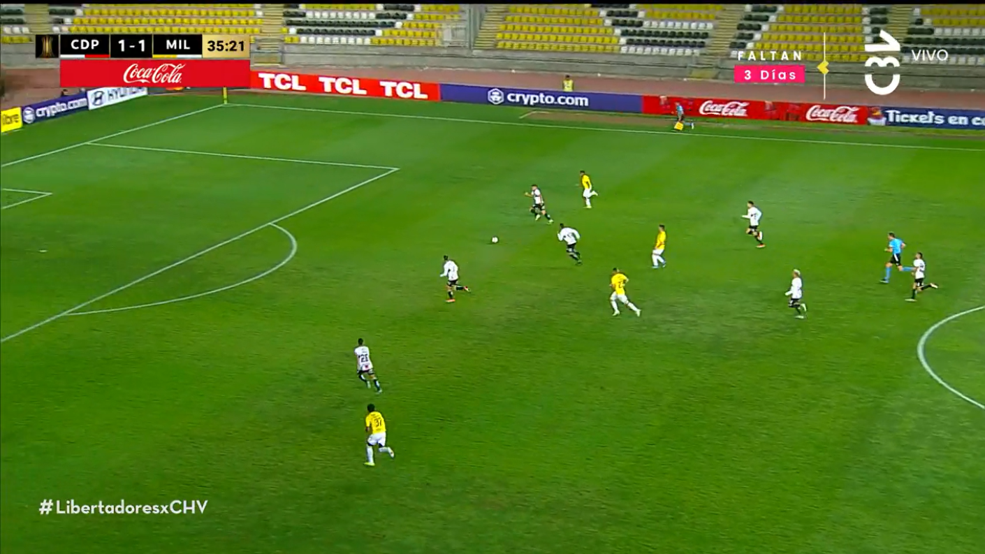 Felipe Chamorro volvió a romper las redes al decretar el 2 a 1 de Palestino ante el conjunto colombiano con un certero disparo que dejó sin opción al portero forastero.