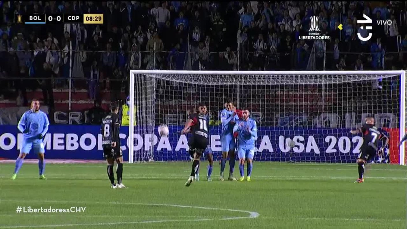 ¡Tiro con peligro! El travesaño salvó a Palestino tras potente llegada de Bolívar