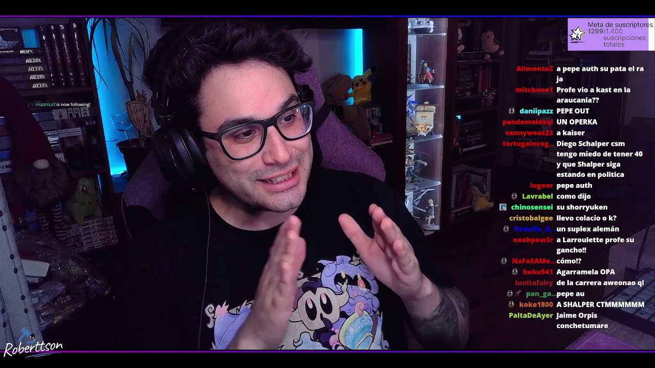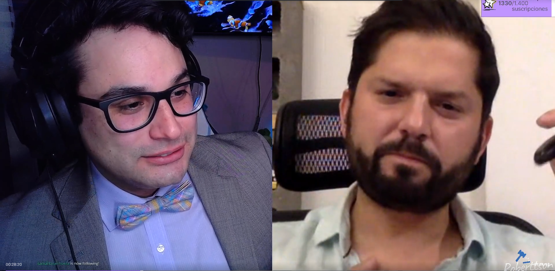 Sin embargo, la “verdadera” llegada a las pantallas de Roberto fue el año 2017. Según nos cuenta, un par de años antes de su estreno como comentarista de política, prendió un par de veces transmisiones en la plataforma morada, alcanzando más o menos 16 viewers. Dice que su sueño era ser youtuber, pero que eligió Twitch porque pensó que requeriría menos trabajo.