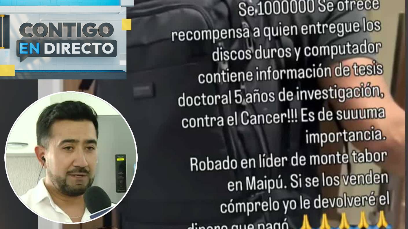 Patricio Salgado, docente de la Universidad de Santiago, sufrió el robo de su tesis doctoral que buscaba ayudar a pacientes con cáncer. El hurto se habría producido en un supermercado en Maipú y se pide ayuda para recuperar la información.
