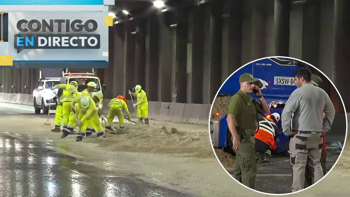 En la tarde de este lunes, en la autopista de General Velásquez, a la altura de la Alameda, tres camiones y tres autos particulares estuvieron involucrados en un choque. Los vehículos mayores llevaban cargas peligrosas.
