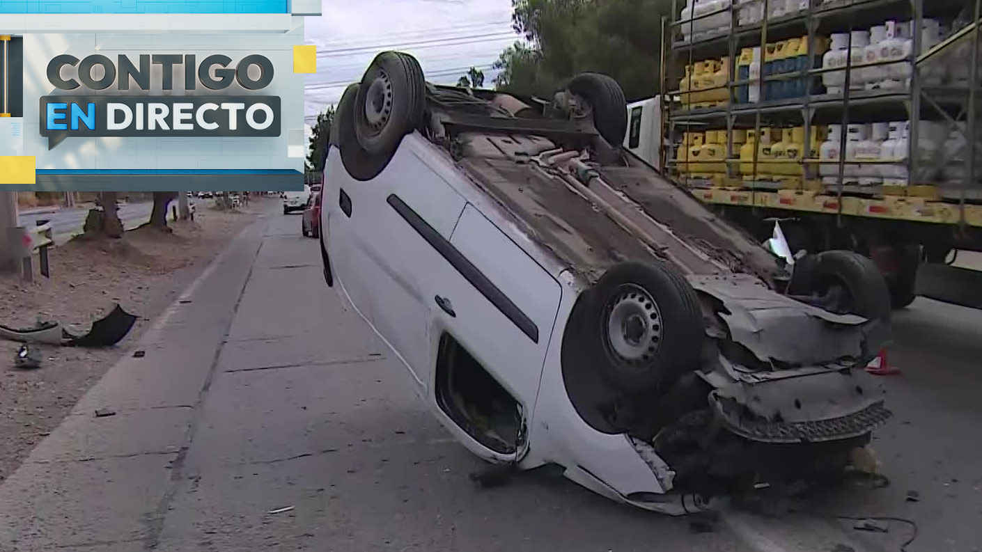 Colisión múltiple dejó un auto volcado en Maipú: Registran dos lesionados tras impacto