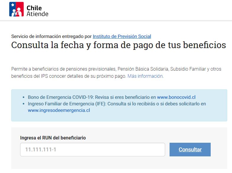 La otra opción es recibir el pago presencial en la Caja Los Héroes o en sucursales de Banco Estado correspondiente al domicilio del usuario, donde debe acudir con su cédula de identidad.