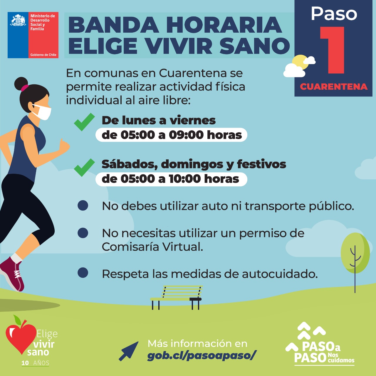 El ministerio de Salud informó cambios en el horario de la franja "Elige vivir sano", destinada a fomentar el deporte en medio de la pandemia.