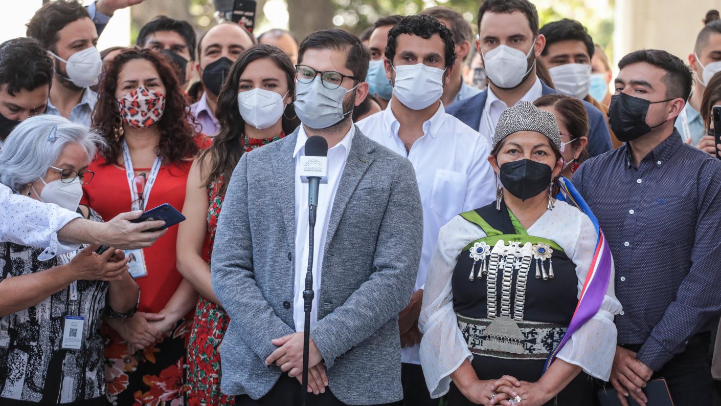 El presidente electo habló con los medios tras visitar al organismo constituyente, donde fue recibido por Elisa Loncon y Jaime Bassa.