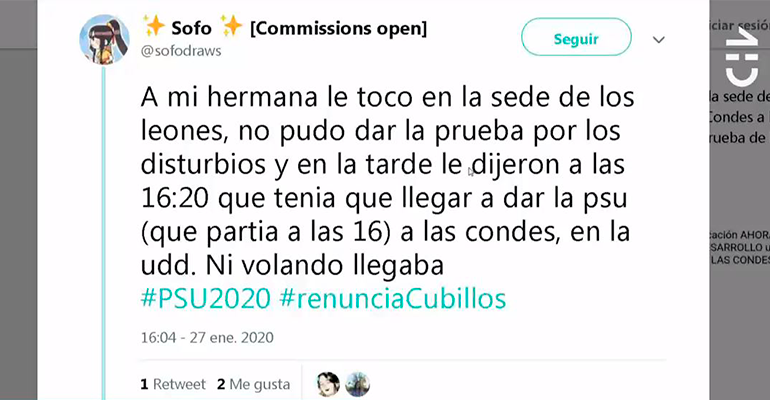 Una joven realizó un tuit denunciando al Demre por la falta de información que le dieron, respecto a los fortuitos cambios de sedes para rendir la PSU.