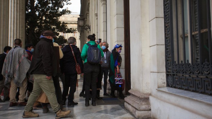 Luis Ugalde llegó hasta el ex Congreso para conversar con los constituyentes que fueron llegando a la sesión clave para aprobar el reglamento.