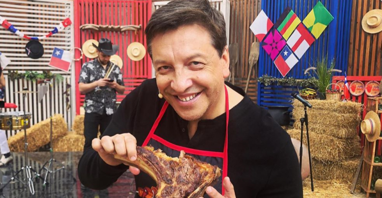 El periodista se lució con una performance al ritmo del cantante en este especial de fiestas patrias de #ContigoCHV.