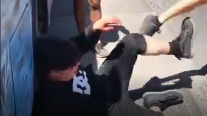 Al menos 10 personas se acercaron a Roberto Belmar, miembro del grupo de ultraderecha "La Vanguardia" para agredirlo e insultarlo en las afueras del Centro de Justicia cuando fue dejado en libertad, tras su formalización.