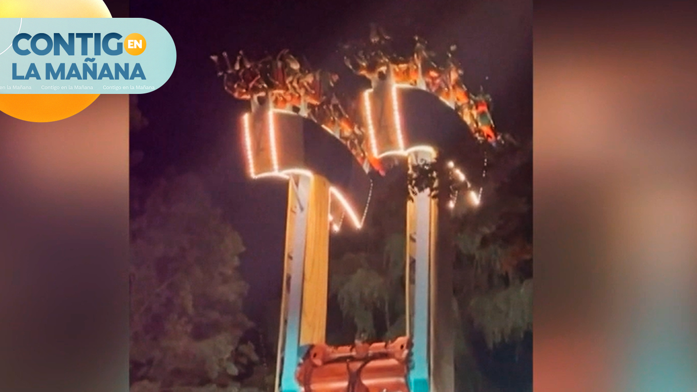 Los asistentes registraron el momento en el que uno de los juegos mecánicos se averió, dejando a los pasajeros de cabeza por más de media hora. Dos personas fueron llevadas a un centro asistencial tras su rescate.