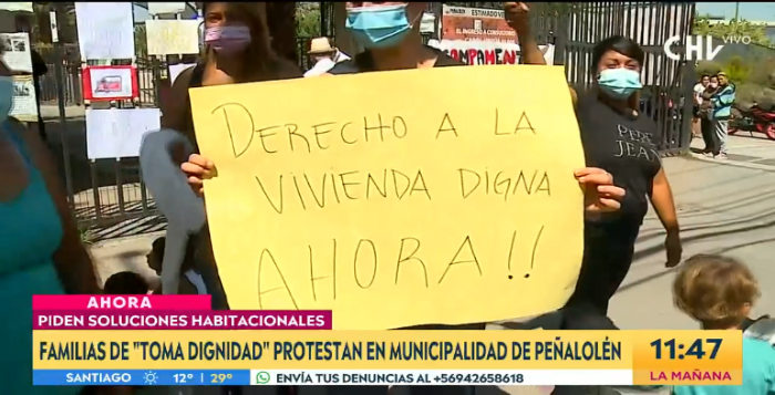 Rafael Cavada llegó hasta la comuna de Peñalolén donde cerca de 80 personas de la "Toma Dignidad" se encuentran manifestándose a las afueras del municipio para reclamar por soluciones habitacionales para cerca de 750 familias.