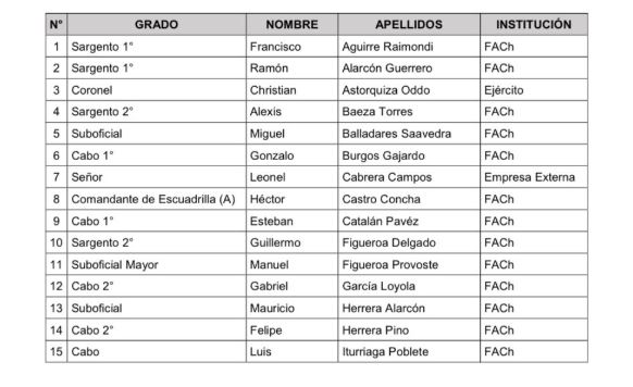 La Fuerza Aérea de Chile entregó, a través de su cuenta de twitter, el listado con los nombres de todos los integrantes de la tripulación del Hércules C130 que se dirigían a la Antártica.
