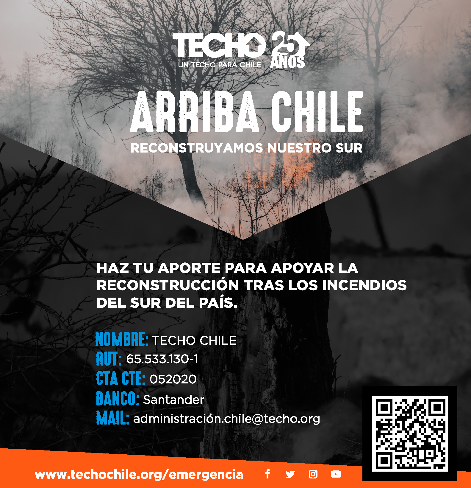 Bajo ese contexto, TECHO Chile inició una campaña de recaudación de fondos para apoyar a la reconstrucción denominada “Arriba Chile: Reconstruyamos nuestro sur”.