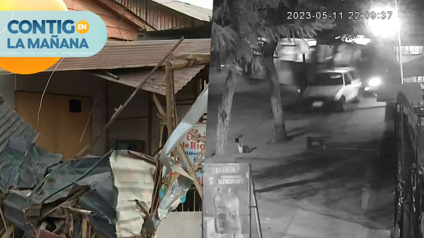 Un vehículo con encargo por robo, chocó a gran velocidad al bus de transporte público, el cual terminó incrustado en el local comercial que hace 15 minutos atrás había cerrado sus puertas.