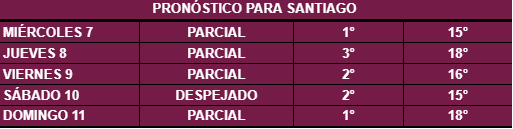 En el centro de Santiago, las mínimas rondarán 1°, 2°, 3° a lo sumo durante lo que resta de la presente semana. Por lo que habrá comunas como Pudahuel, Maipú o San Bernardo que podrían bajar de 0° en las madrugadas. Por lo mismo, las condiciones de ventilación serán malas en la cuenca metropolitana.