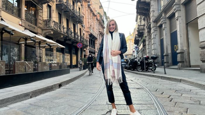 La presentadora de 32 años ejemplifica lo anterior con los automóviles superdeportivos creados por la empresa Pagani, cuya sede central se encuentra en la ciudad de Módena. "Ellos trabajan el cuero de las palancas de cambio con una persona que los produce cerca de la empresa", indica. "Todo esto en el contexto de la bella Italia, que es este lugar maravilloso, con esta gastronomía y paisajes espectaculares... y todo eso lo conoceremos en profundidad".