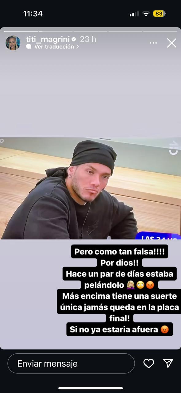 Cabe destacar que a inicios de semana, Magrini compartió un extracto de otra conversación de Camila Power donde aparecía hablando mal de Iván Cabrera, instancia en que Titi aprovechó para hacer campaña en su contra.