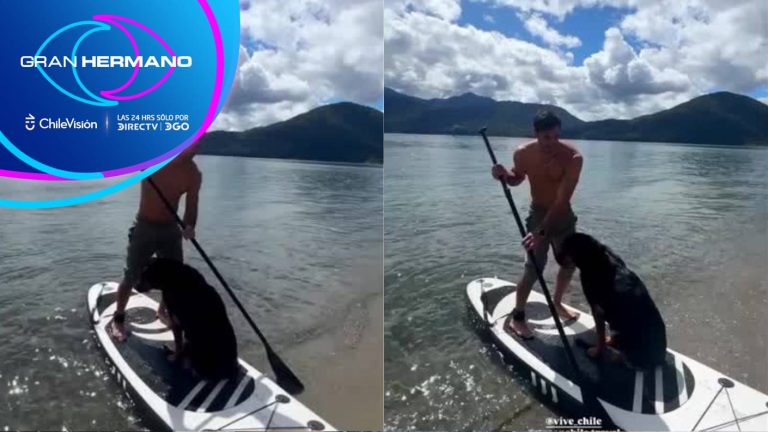 ¡Newen también es deportista! Pedro Astorga y su perro practicaron Stand Up Paddle en Pucón
