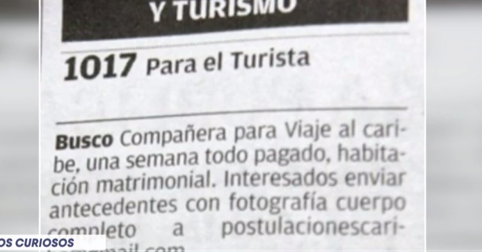 A todos nos gustaría viajar por el mundo, pero ¿lo harías con una persona que jamás has visto en la vida? De eso se trata una propuesta que circula hace días en un diario capitalino. Esta no es la primera vez que un hombre hace la invitación a través de este medio, lo que sin duda llama la atención de muchos.