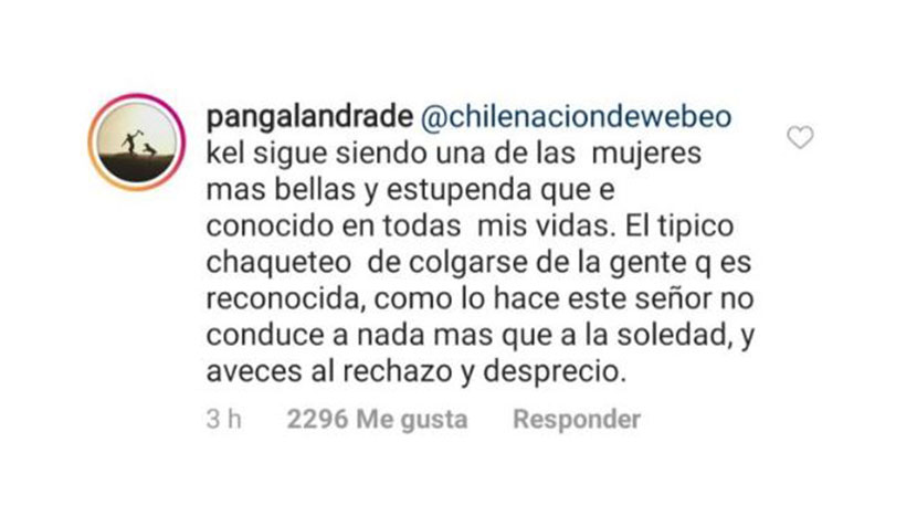 "Kel sigue siendo una de las mujeres más bellas y estupenda que he conocido en todas mis vidas. El típico chaqueteo de colgarse de la gente que es reconocida, como lo hace este señor no conduce a nada más que a la soledad y a veces al rechazo y desprecio", escribió Pangal.