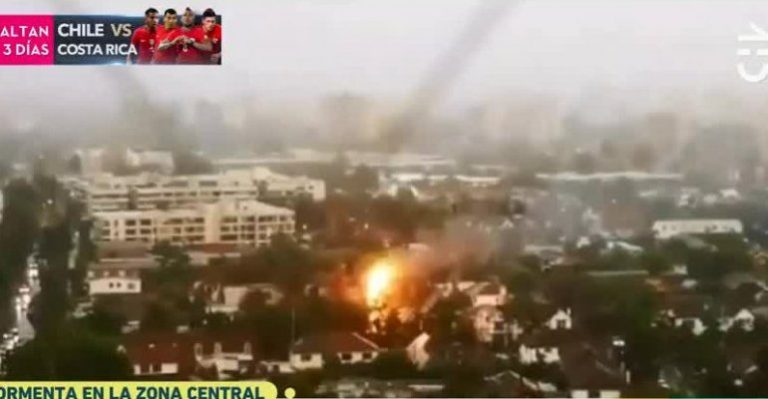 Caída de rayo incendió palmera en el centro de Ñuñoa