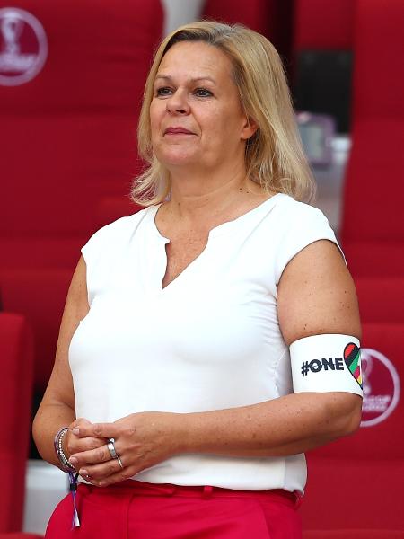 Sumado a esto, la Ministra del Interior de Alemania, Nancy Faeser, fue capturada en las gradas del estadio luciendo un brazalete arco iris en su brazo con la frase “One Love”.