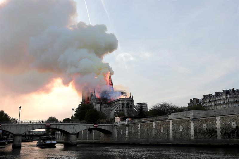 Las llamas podían ser vistas desde distintos puntos de la capital francesa. Ahora, las autoridades temen que pueda caer gran parte de la estructura.