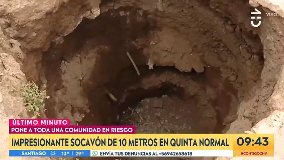 De un día para otro, una vecina de la comuna de Quinta Normal notó como el suelo de su patio se hundió casi 10 metros, dejando una gran abertura en su patio.