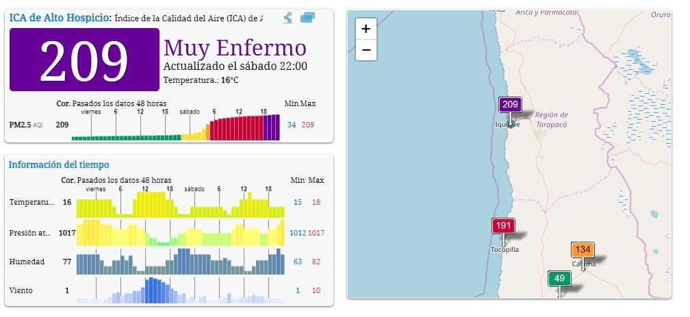 También puedes revisar World Air Quality Index, un sitio donde muestra en tiempo real la calidad del aire. En el caso de Chile, utiliza los datos del Sistema de Información Nacional de Calidad del Aire.
