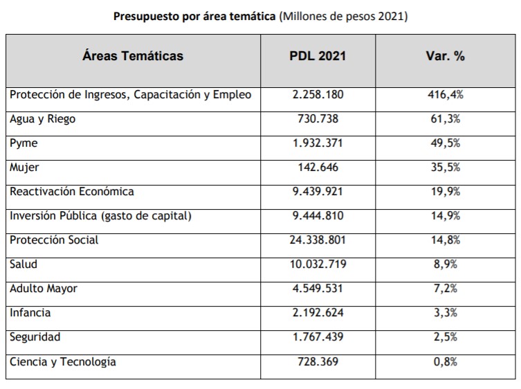 Otros enfoques transitorios que tendrá este presupuesto incluyen un fondo a la cultura por $15.320 millones y a pymes e innovación por hasta $150 mil millones.